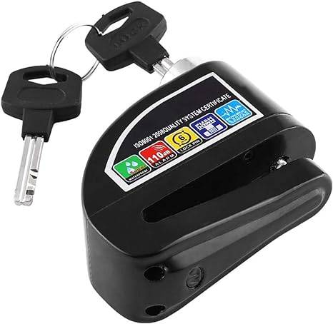 • Protección antirrobo: el bloqueo de disco de alarma protege tu querida motocicleta de los ladrones mientras estás en casa o estacionas afuera con un sonido de alarma fuerte de hasta 110 dB. La alerta de advertencia sensible activará la alarma cuando vibra para asustar a los ladrones lejos de tus pertenencias