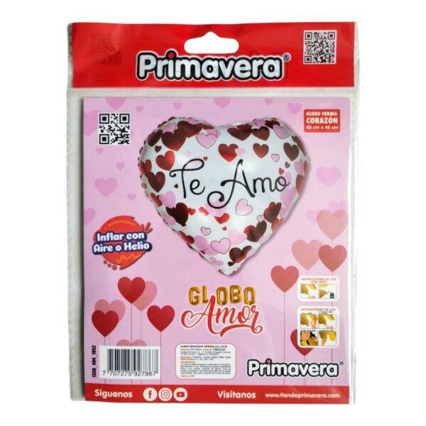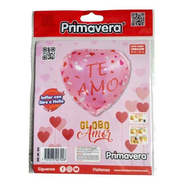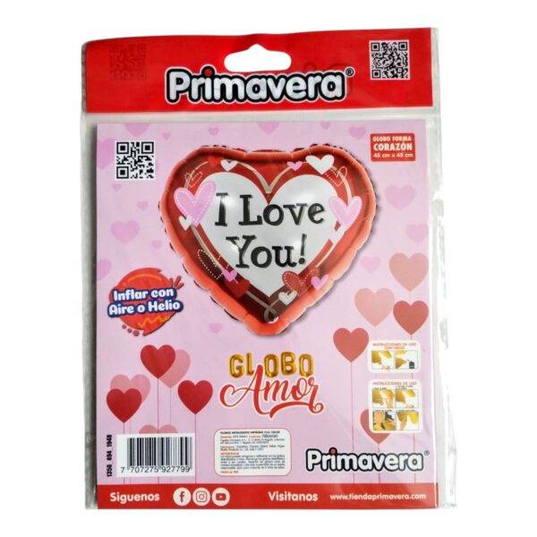 - Globo metalizado en forma de corazón e impreso a full color.