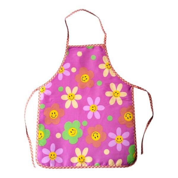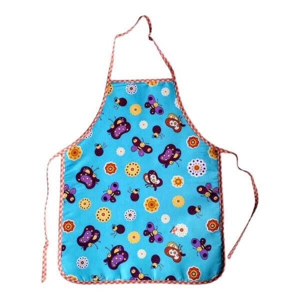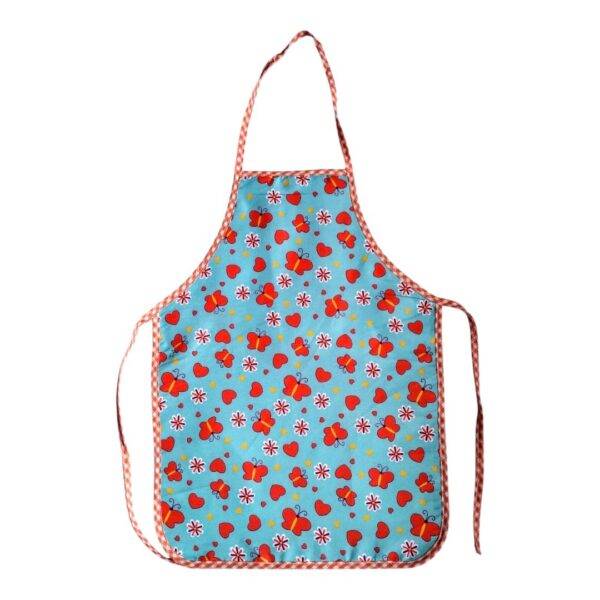 - El delantal tiene una tira en el cuello fija y 2 tiras (una a cada lado) para enlazar en la cintura.