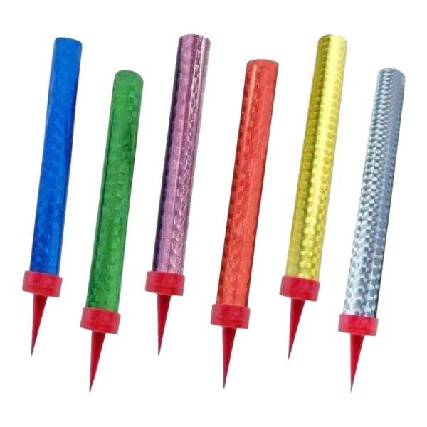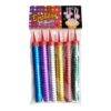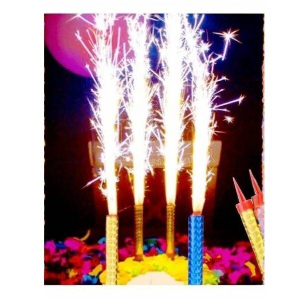 - Son velas tipo bengala multicolor con soporte plástico para colocar directamente sobre pasteles o tortas.